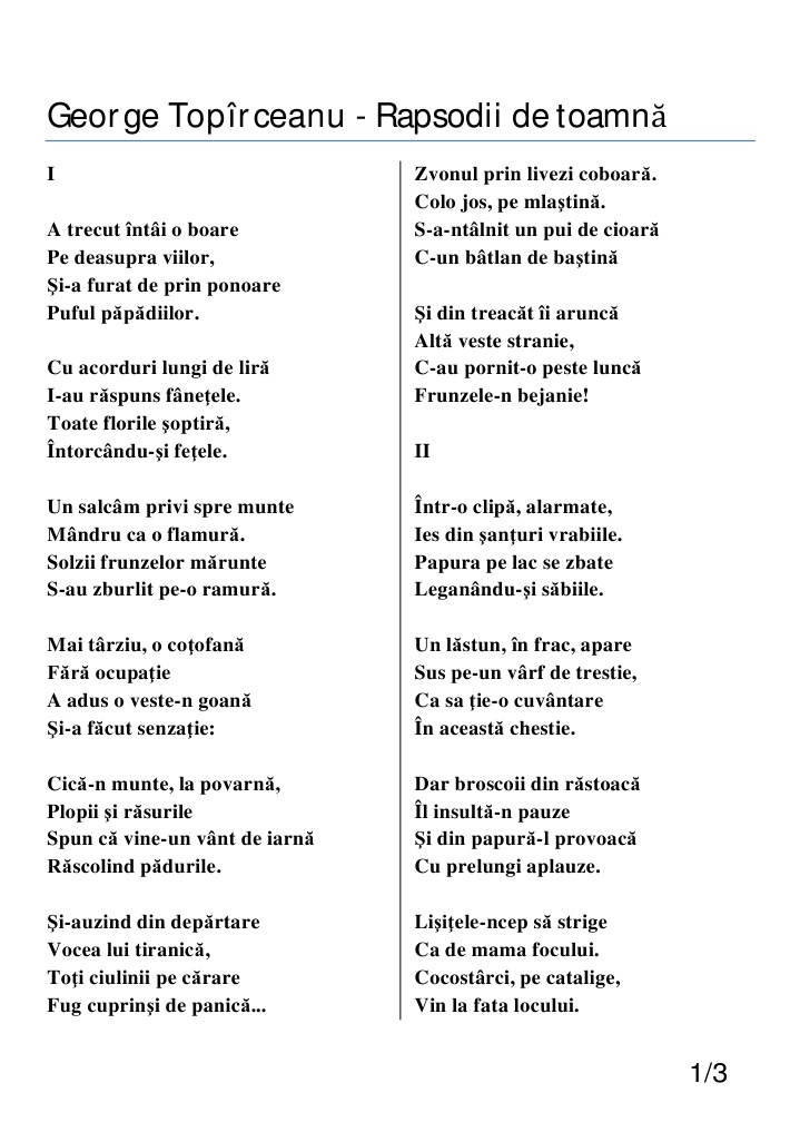 Rapsodii De Toamna De G Toparceanu Anideșcoală Ro