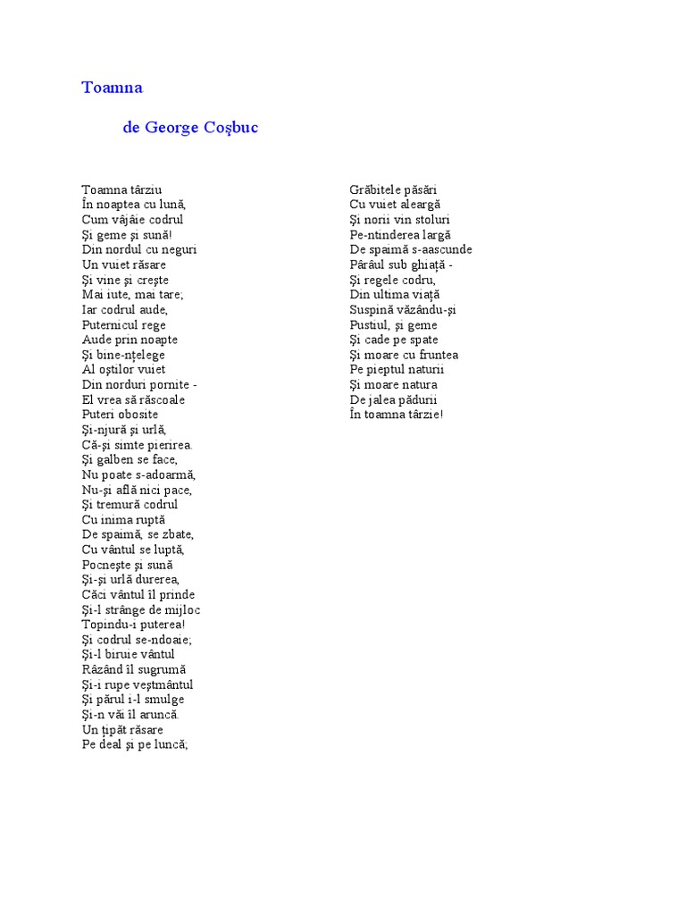 Poezii Despre Toamna De George Cosbuc