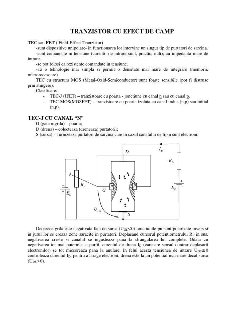 Tranzistorul Cu Efect De Camp Electronicaaplicata