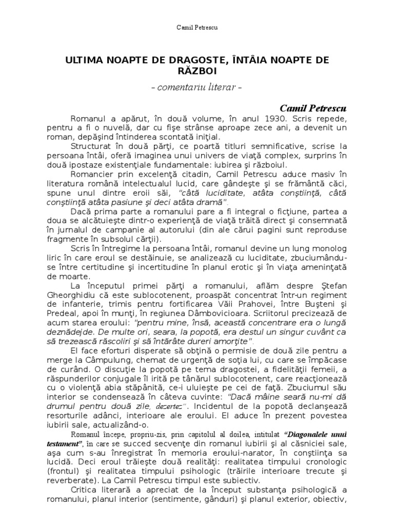 Doc Ultima Noapte De Dragoste Intaia Noapte De Razboi Camil Petrescu Popescu Andrei Academia Edu