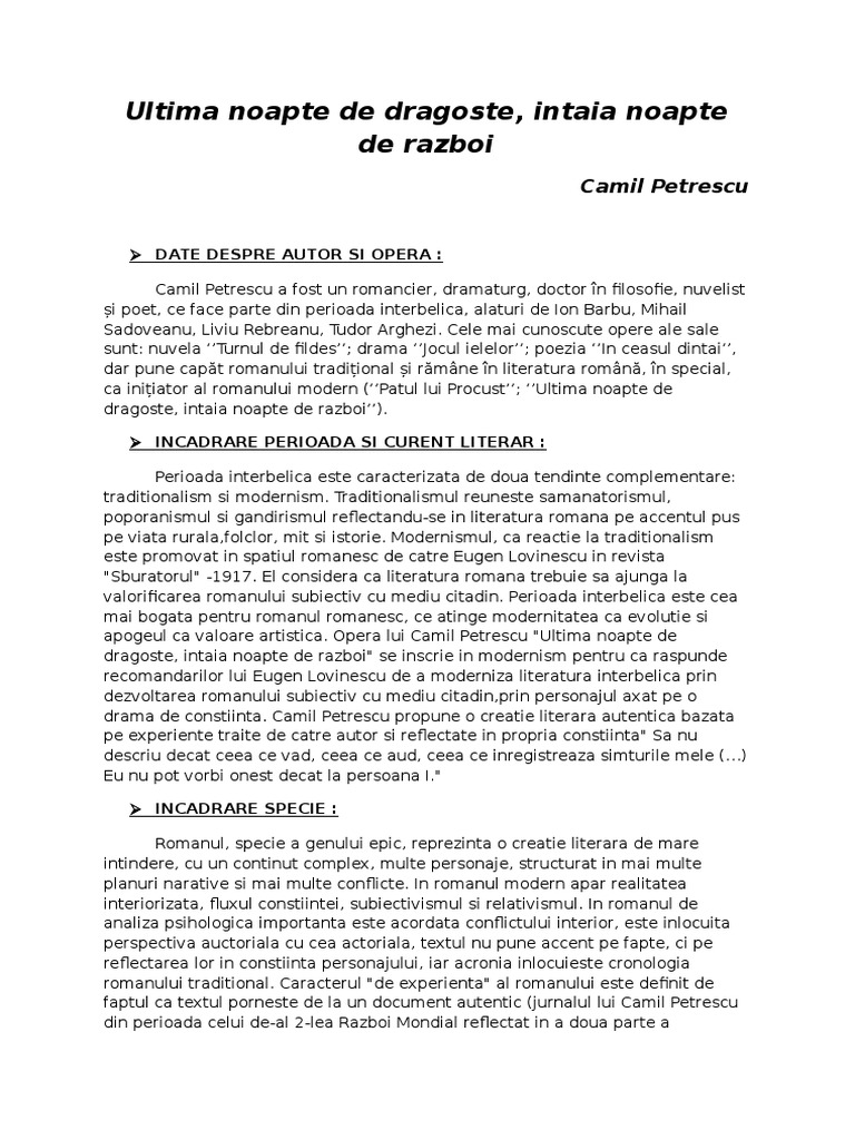 Referat Romanul Subiectiv Ultima Noapte De Dragoste Intaia Noapte De Razboi 150238 Graduo