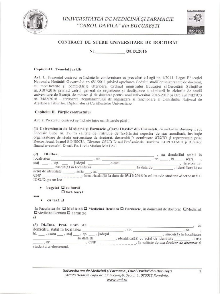 Contract De Studii Universitare De Doctorat 2016 Pdf