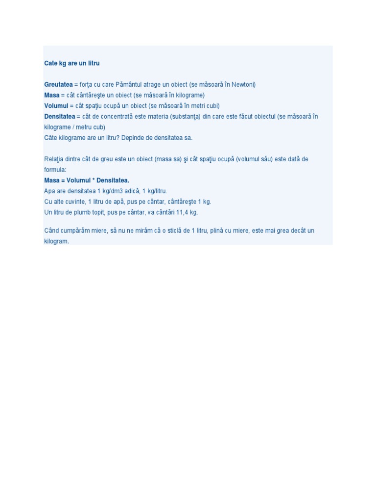 Daţi Mi Va Rog Un Kilogram De Apă Fizica Un De Ce Elucidat