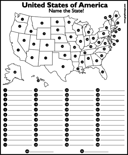 United States Of America Name The State Worksheet