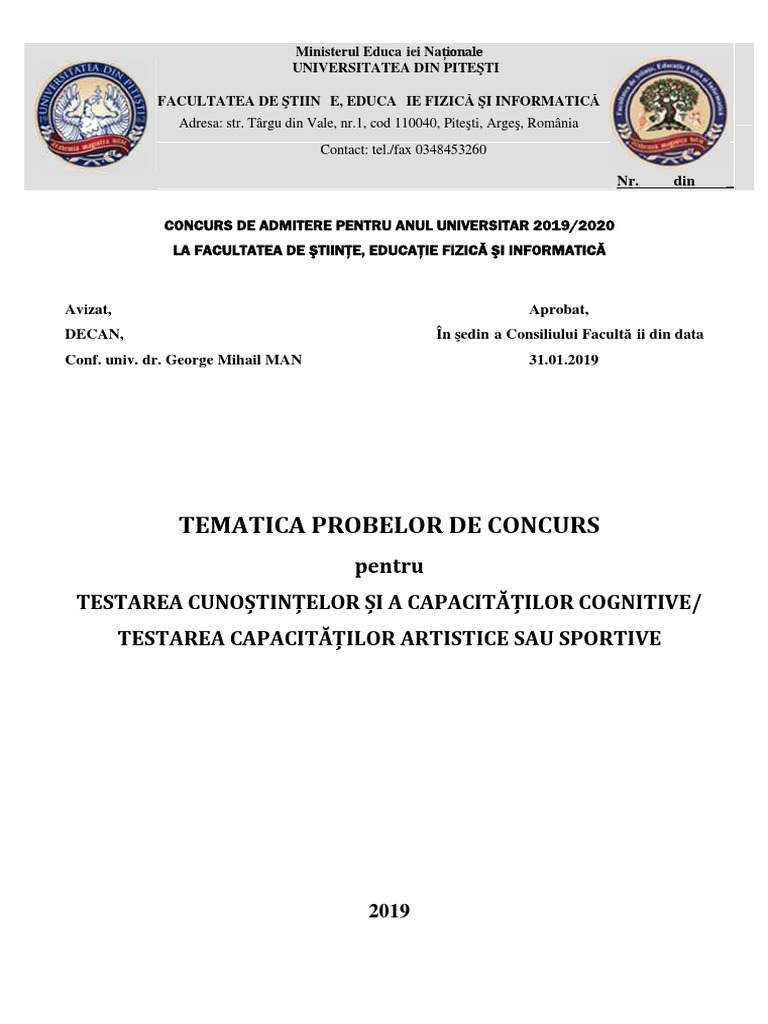 Admitere 2019 2020 La Universitatea Din Pitești Sesiunea I 10 31 Iulie 3140 De Locuri La Licență și 3250 De Locuri La Masterat