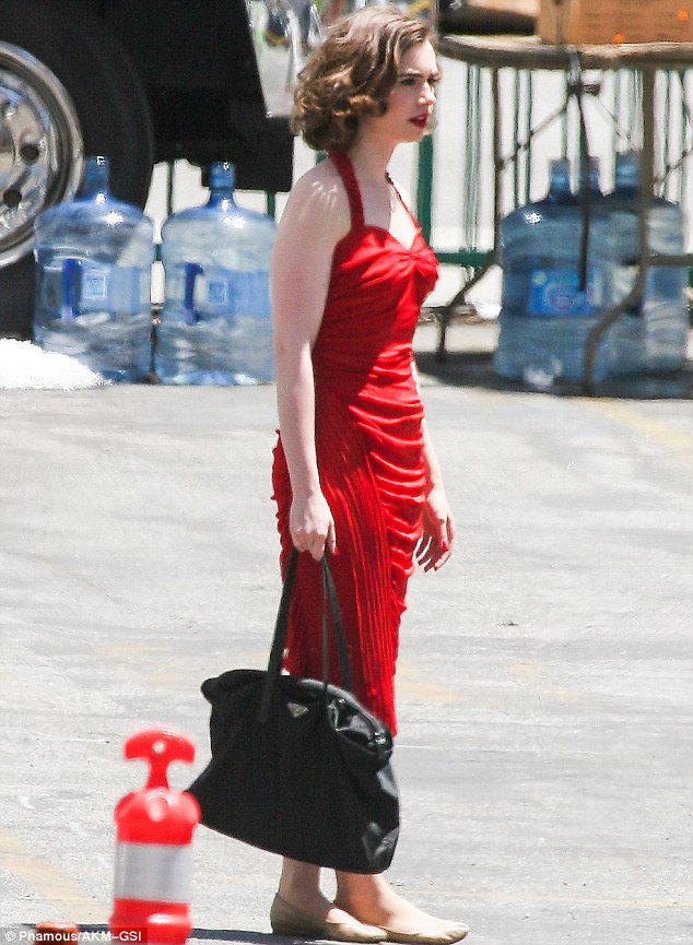 Lily Collins In Scarlet Dress For Untitled Warren Beatty Project