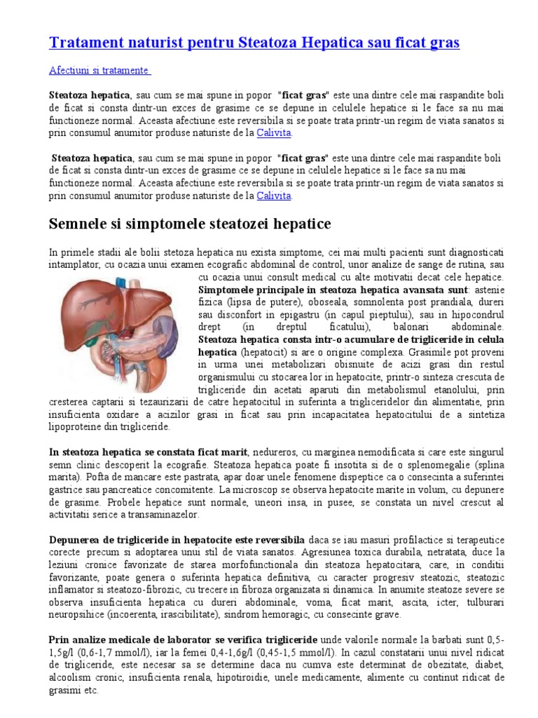 Tratament Naturist Pentru Steatoza Hepatica Sau Ficat Gras