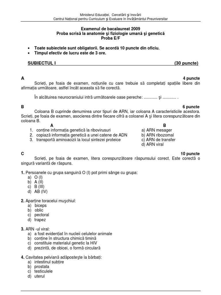 Modele De Subiecte 2014 Biologie Anatomie Si Fiziologie Umana Genetica Si Ecologie Umana