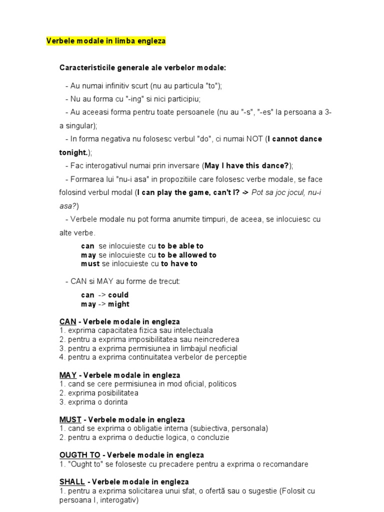 Verbele Modale In Limba Engleza