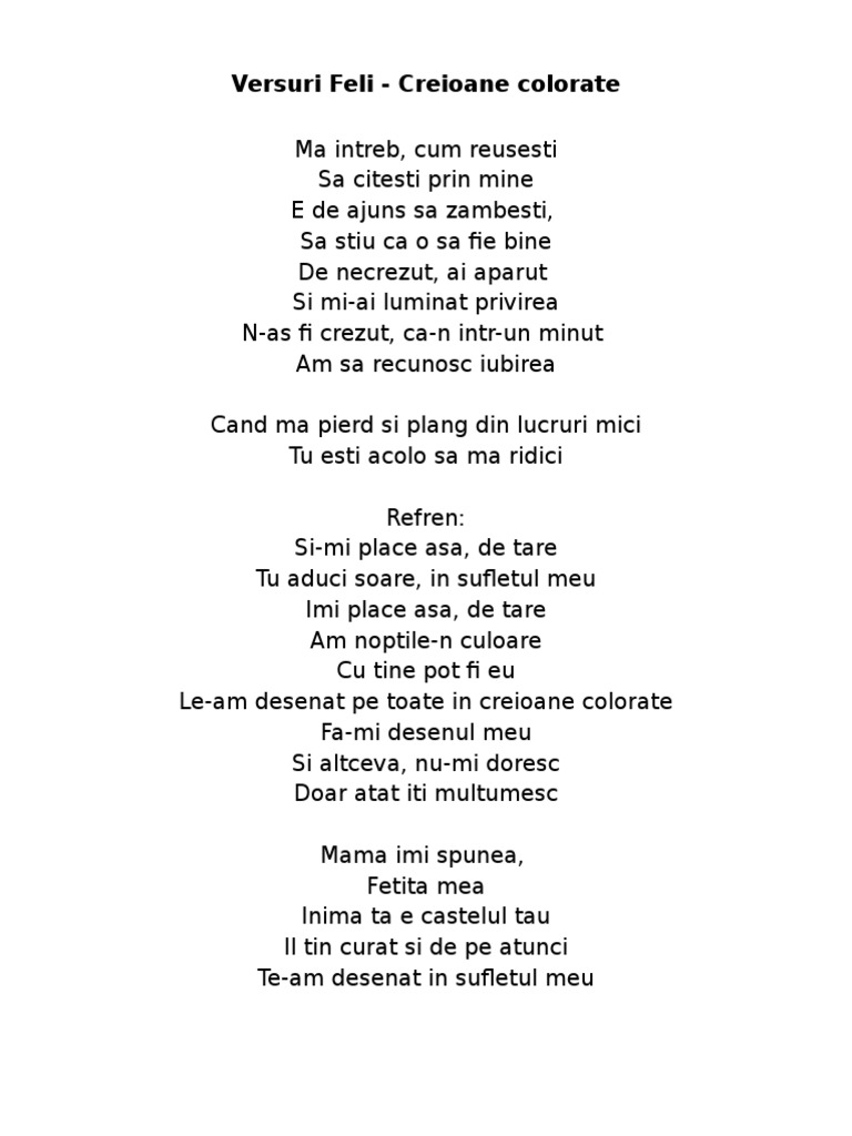 Versuri Versuri In Romana Feli Creioane Colorate Versuri