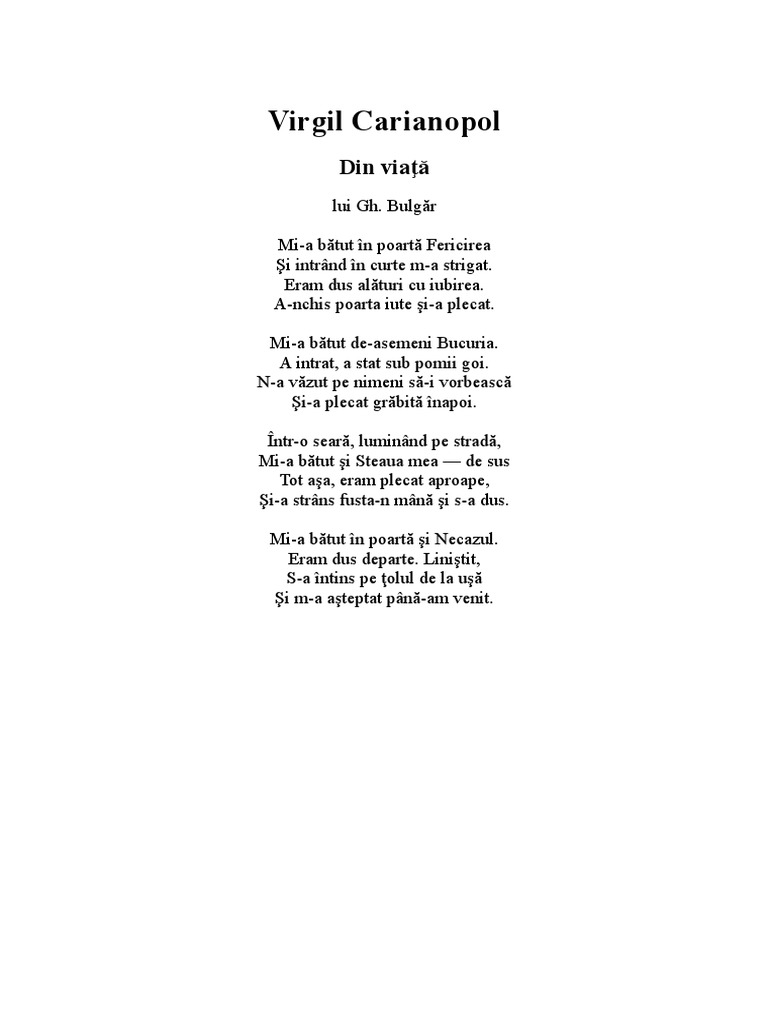 Din Viata Versuri De Virgil Carianopol Avantul Liber
