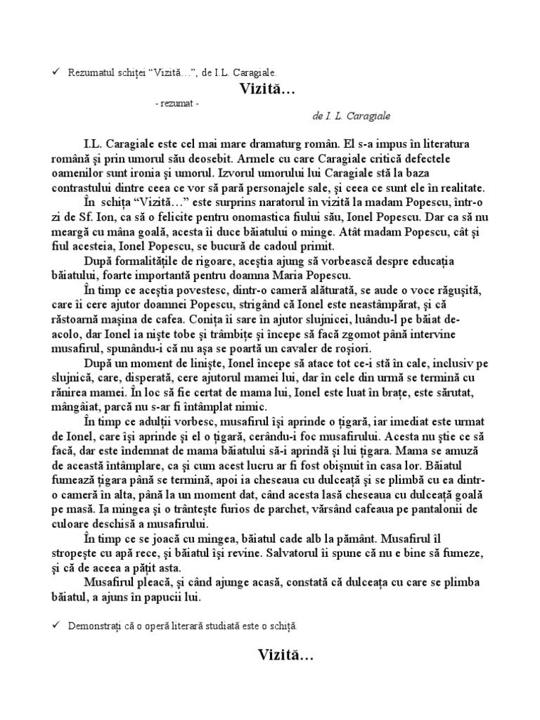 Rezumat Al Textului Vizita De Ion Luca Caragiale Brainly Ro
