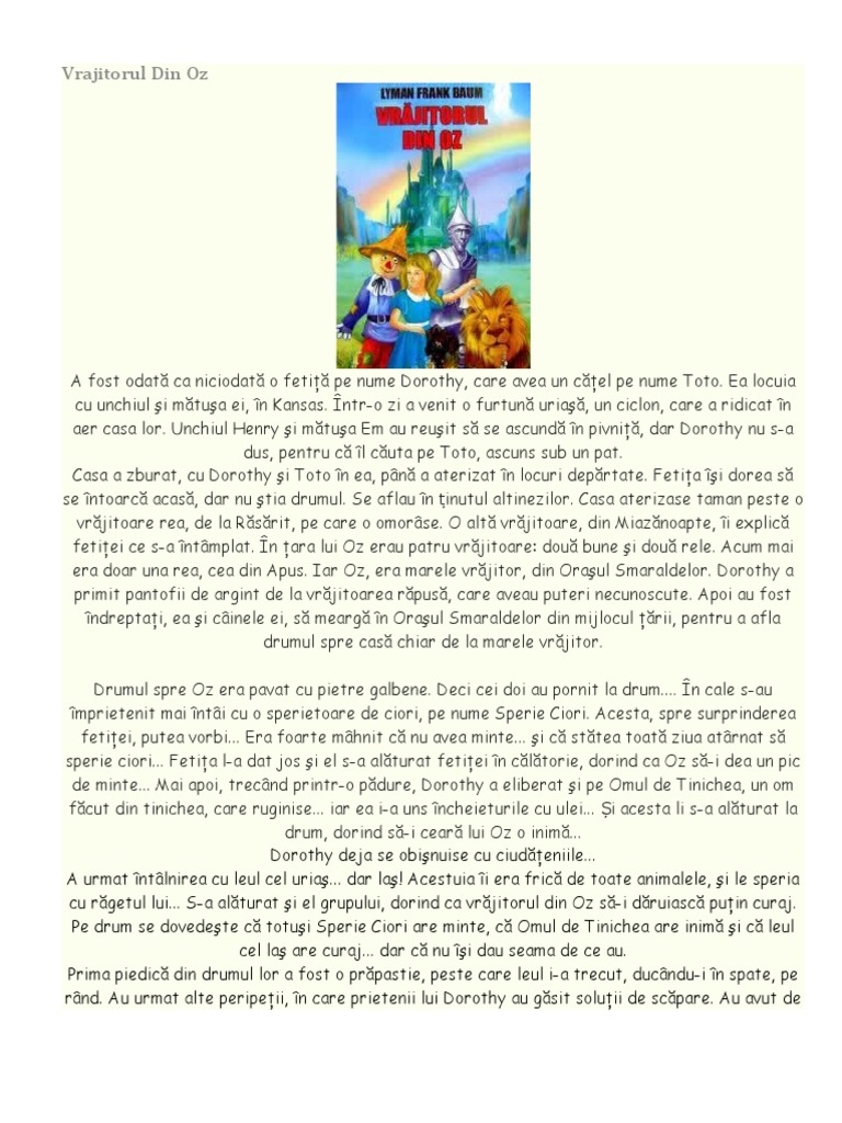 Rezumat Vrajitorul Din Oz Mwl11090p2lj