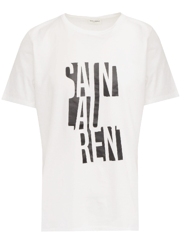 Saint Laurent White Cotton T Shirt With Logo Print Modesens