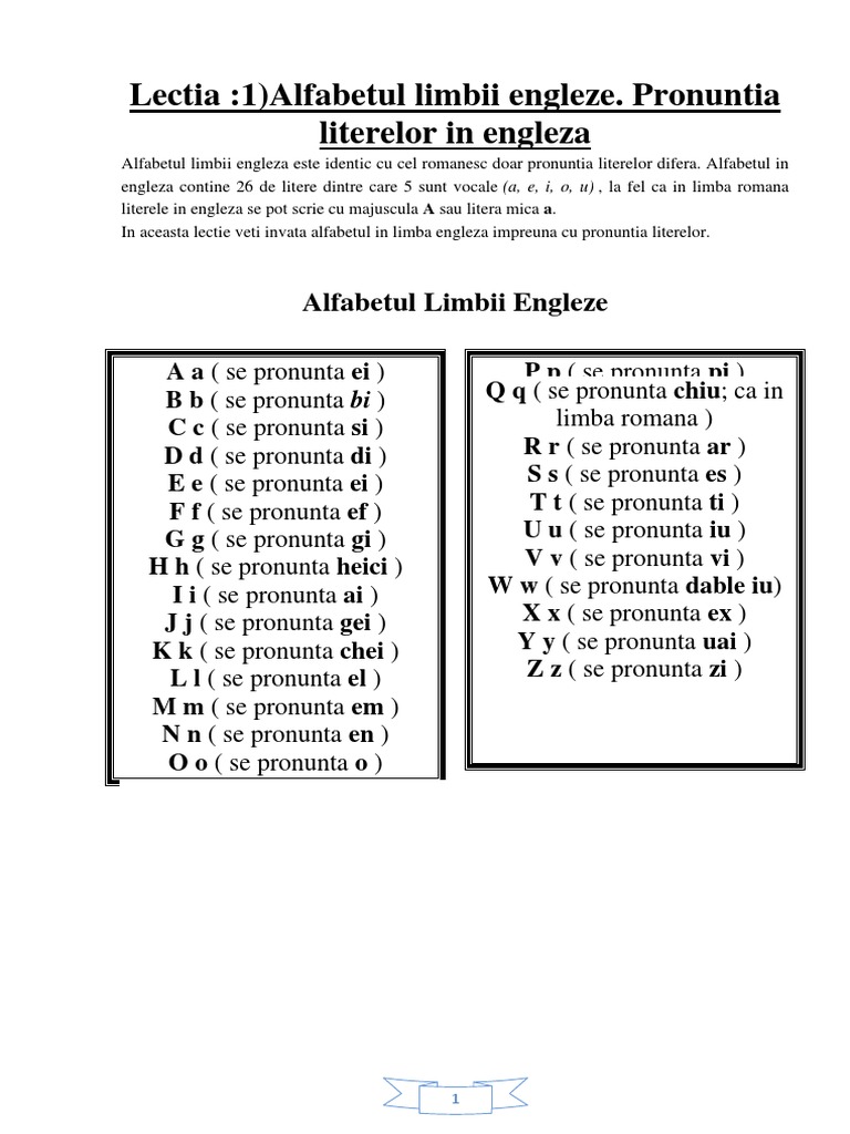 Doc Alfabetul Limbii Engleze Tanase Ovidiu Academia Edu