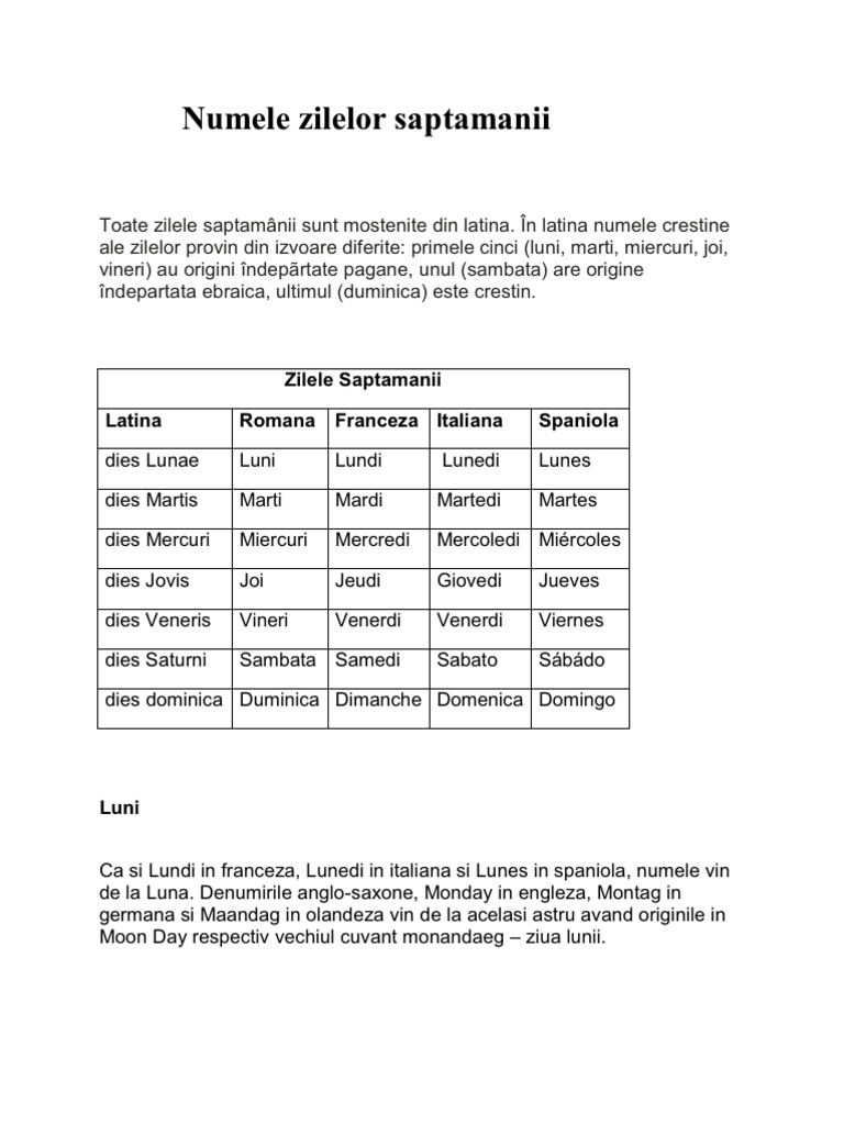 Zilele saptamanii los dias de la semana lunes luni martes marti miércoles miercuri jueves joi viernes vineri sábado sambata domingo duminica esentaspaniola gramatica y paella.